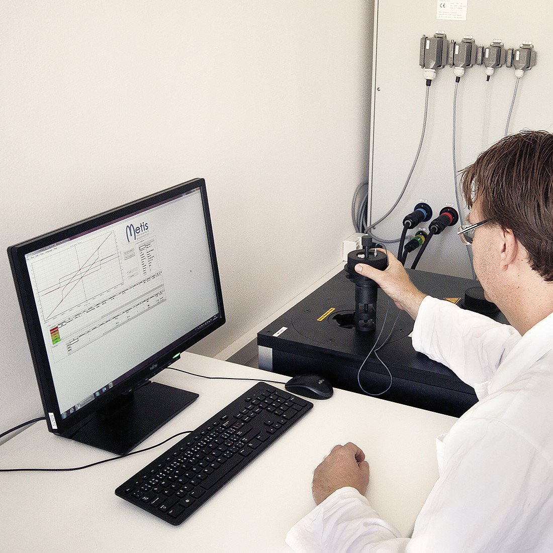 Az állandó mágnesek felsorolt paraméterei hiszteroszkóp, impulzus magnetométer vagy más alternatív módszerek segítségével mérhetők. Laboratóriumaink rendelkeznek hiszterográffal (akkreditált laboratórium az ISO 17025 szerint) – szabványosított módszer az IEC 60404-5 szerint ill. az ASTM A977/A977M szabvány szerint, valamint az IEC TR 62331 szerinti impulzus magnetométerrel, amely lehetővé teszi a HcJ belső koercivitás mérését minden típusú állandó mágnesen, beleértve a SmCo (szamárium-kobalt)típusú mágneseket is, amelyek esetében ez a paraméter szobahőmérsékleten nem mérhető hiszterográffal. Korszerű berendezéseink lehetővé teszik továbbá, hogy a szabványos és összetett mágnesformák e paramétereit -40°C és +220°C közötti hőmérséklet-tartományban is megmérjük. A BH karakterisztikák impulzusos módszerrel történő mérésekor a mágneses mező indukciója elérte a 7T-t! Azonban sem a hiszterográf, sem az impulzus magnetométerek nem teszi lehetővé az állandó mágnesek minden méretformájának és mágnesezési módjának mérését. A hiszterográfon és az impulzus magnetométeren mérhetőnél nagyobb és kisebb alakú és méretű mágneseket ugyanazon gyártási tételből készült „szabványmintákkal“ helyettesítik, amelyek így a mágnes anyagának reprezentatív mintájaként szolgálnak.